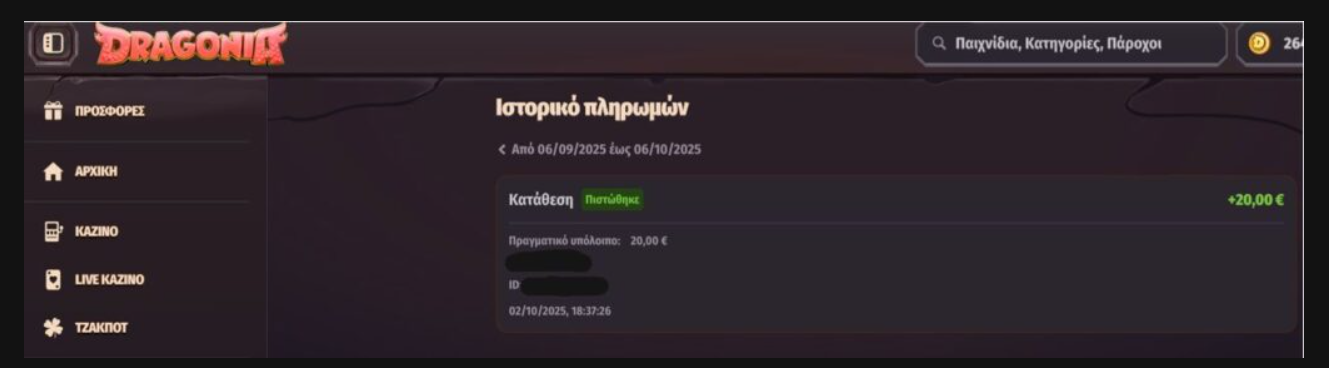 Βήμα 1) Κάνεις εγγραφή μέσα από τα επίσημα Links της Profeslots σε όποιο καζίνο θέλεις. Για παράδειγμα στο Dragonia πατώντας το Link